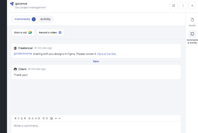 - Add context to your work or reply to client feedback