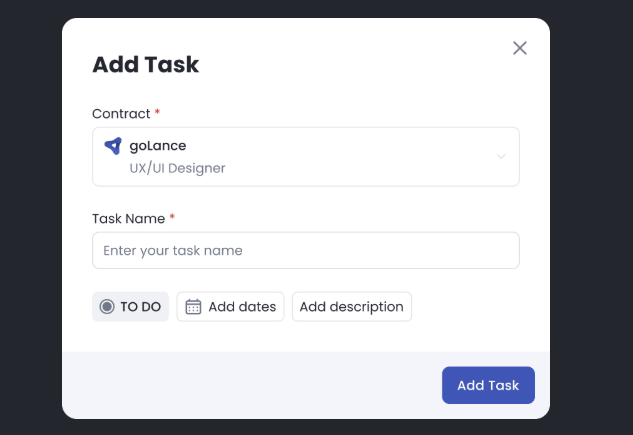 The Task Management feature on goLance helps contractors plan and organize their work, track time more accurately, and build trust with clients through greater transparency. By creating tasks and sub-tasks, you can clearly communicate what you're working on and how time is being spent.