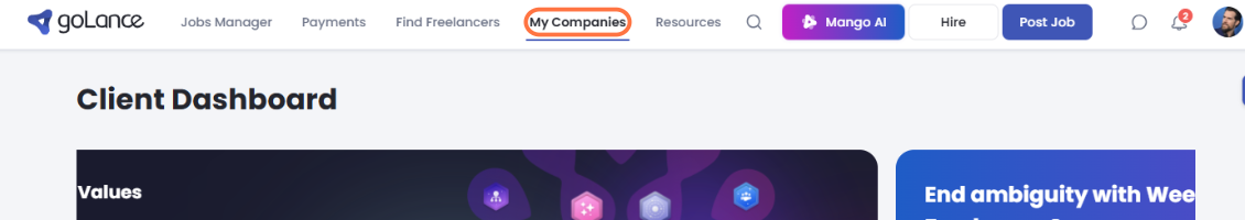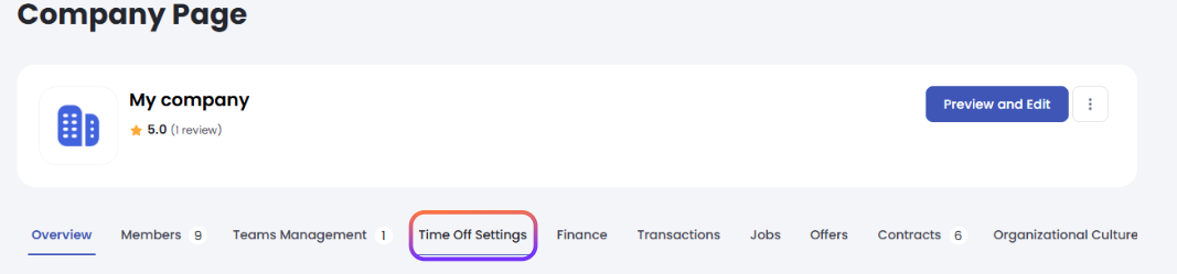Access Your Company Settings Log into your goLance account and click on My Companies at the top of the page. Select your company, then navigate to the Time Off Settings tab.