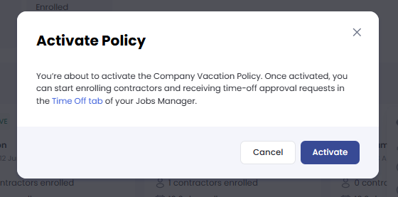 Activate and Enroll If you are ready to go, Activate the policy. You can then begin enrolling your contractors and setting their individual allowances.