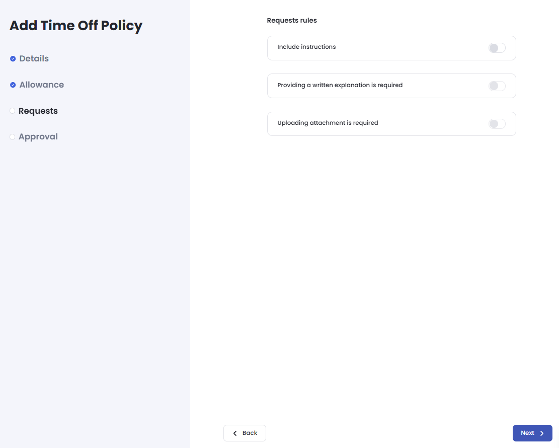 Creating your Time Off Request policies is simple. Follow these steps to get started: